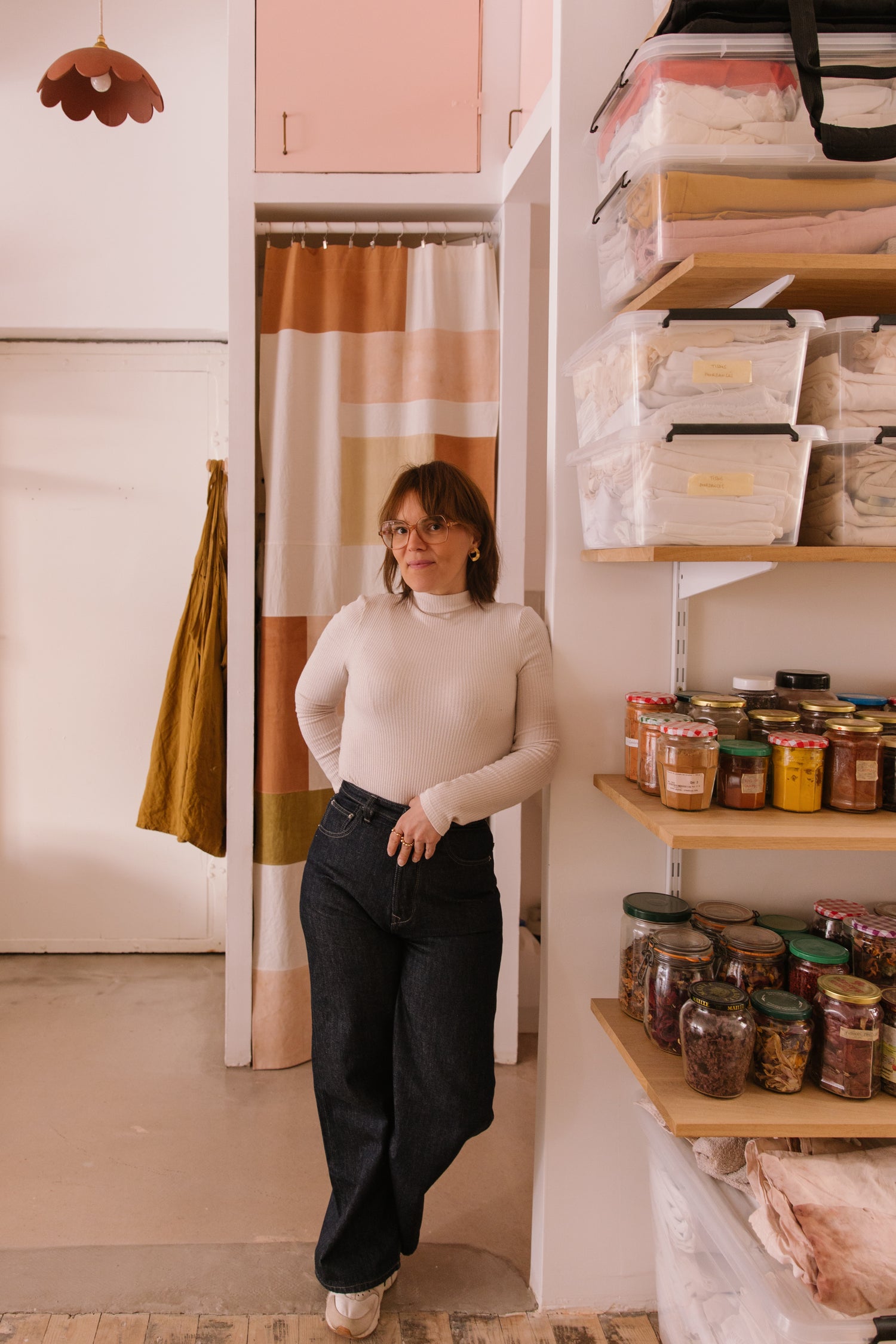 Chaque pièce est une œuvre unique, entièrement fabriquée à la main dans l'atelier de Sandrina à Lyon. De la teinture à la couture, chaque étape est réalisée avec soin et minutie.